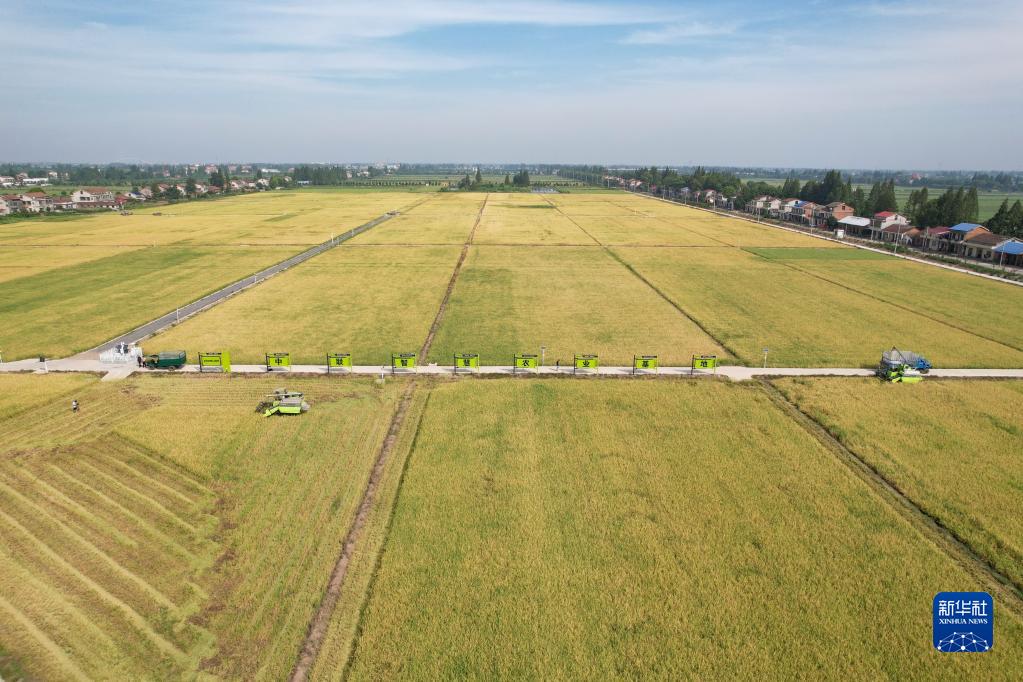 这是湖南省沅江市草尾镇中联智慧农业沅江基地的机械化收割现场(2022年7月14日摄)。新华社发(钟祖彪摄)