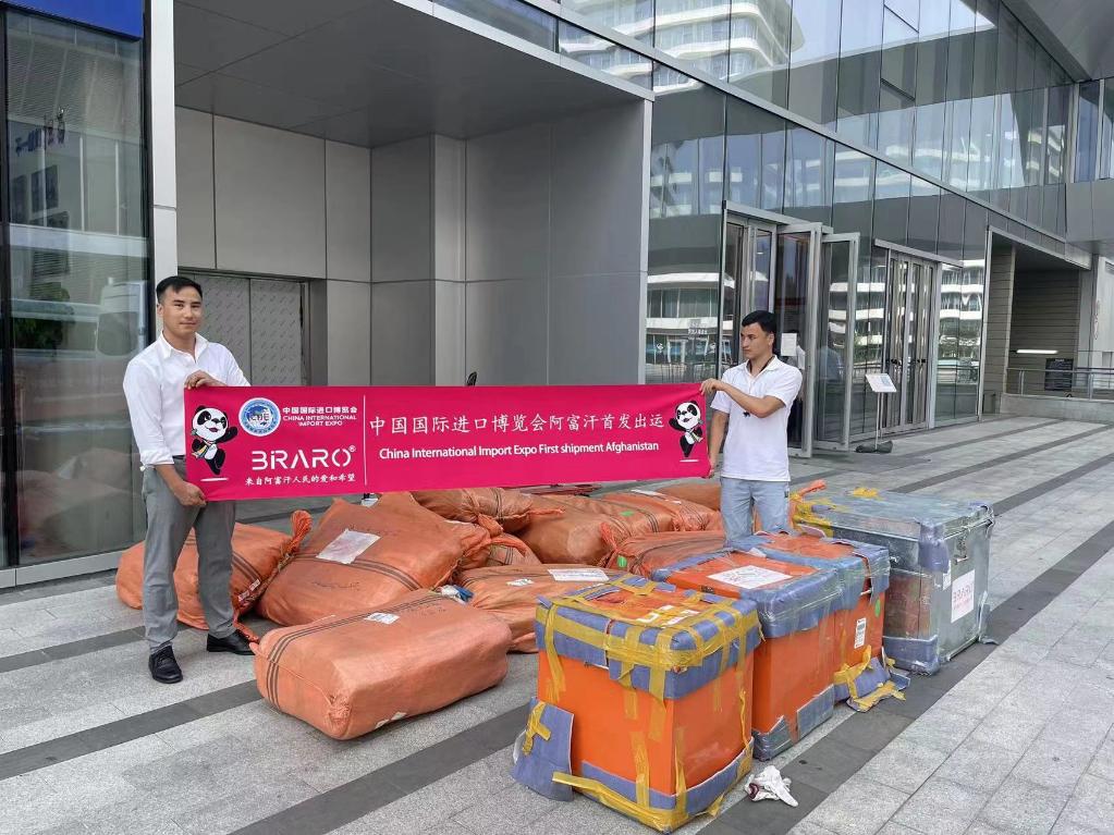 通过第四届进博会,阿富汗商人阿里带来的松子、地毯等展品成为“网红”,在绿地贸易港(虹桥)国际贸易公共服务平台的帮助下,这些网红产品更是“飞”到了全国各地。