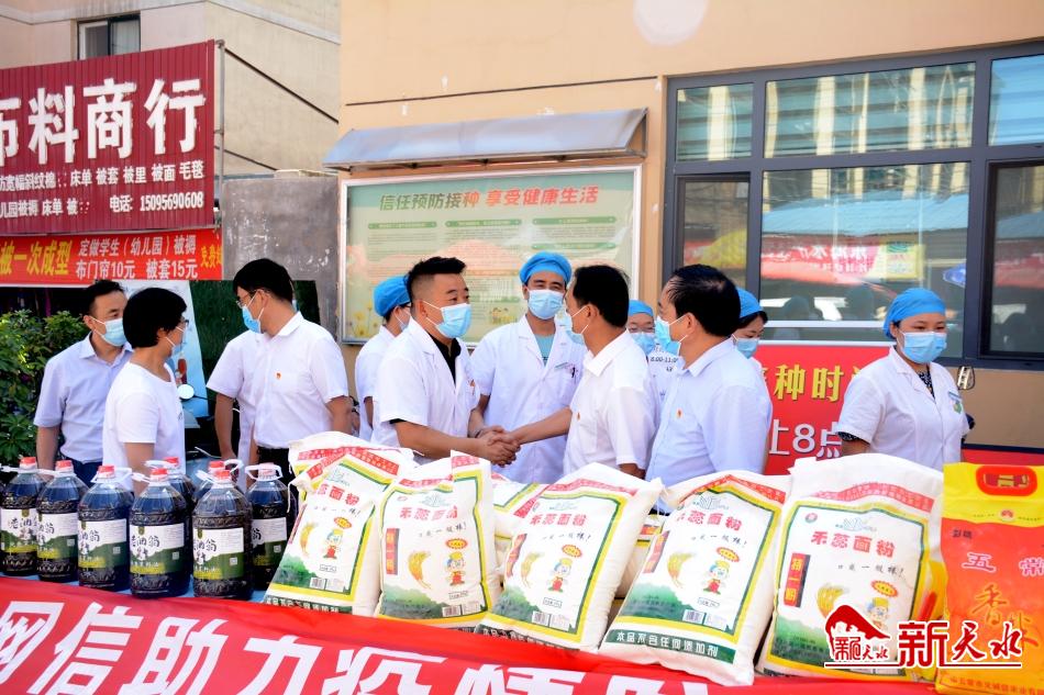 新天水讯【记者马哲】声声慰问传温暖,时时牵挂送关怀。7月28日,市委网信办、市互联网行业党工委、市网络文化协会联合组织开展“天水网信系统助力疫情防控在行动”捐助慰问活动,看望G30天水东西出口、麦积区吕家村社区等一线防疫人员,为他们送去米面油、矿泉水、牛奶等食品以及消毒液、口罩等防疫物资。