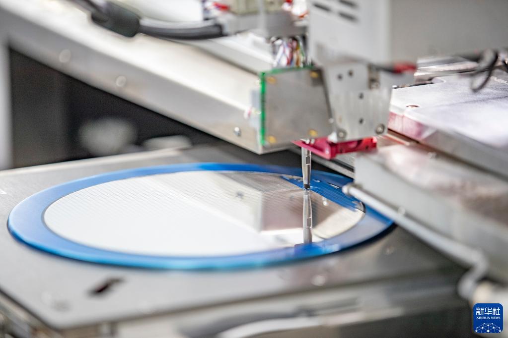 在重庆平创半导体研究院有限责任公司,工作人员利用设备对芯片进行贴片作业(2022年4月15日摄)。新华社记者 黄伟 摄