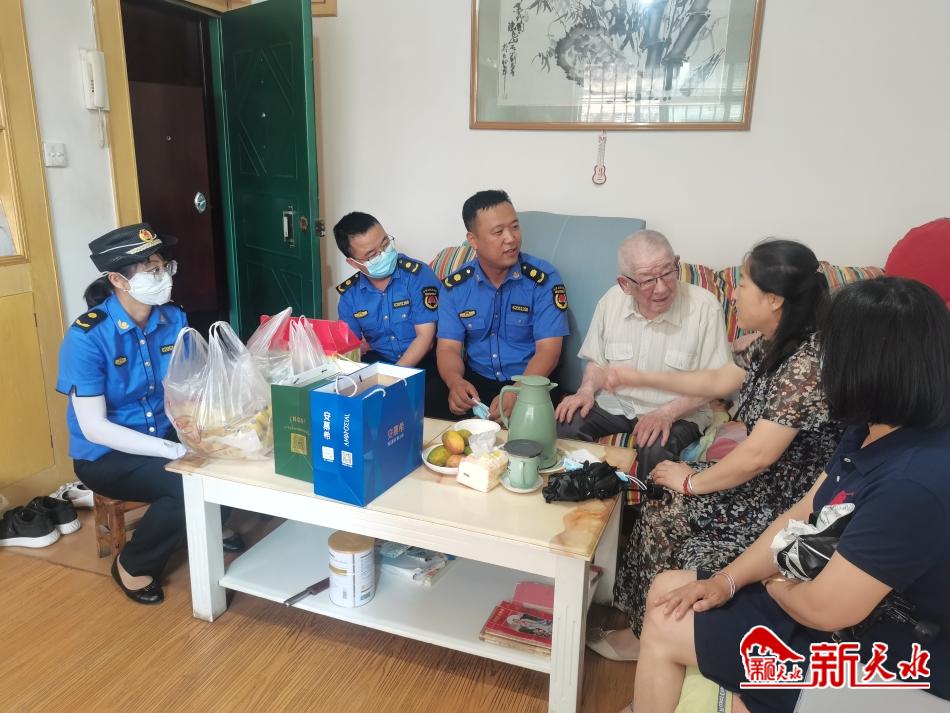 新天水讯【记者洪野】8月1日,秦州区执法局东关中队党支部联合十方堂社区党支部看望慰问了退伍老党员、老战士郑瑞亭,为老人送去了党组织的关怀和节日问候。