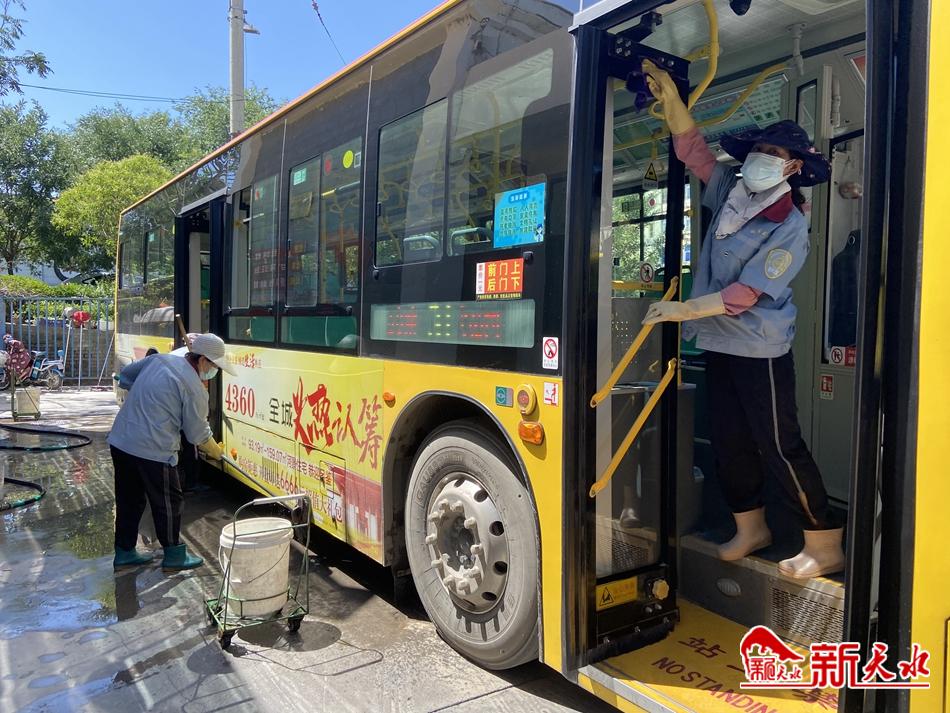 当天上午,记者来到位于麦积区成纪大道东路的麦积公交总站看到,1路、31路等公交车正在有序驶入驶出,每辆公交车进站停稳后,几位保洁人员便上前进行清洁打扫,在擦拭完车内座椅、扶手、窗户把柄,拖洗了车内地面和车体后,对车辆进行全面消毒并开窗通风。