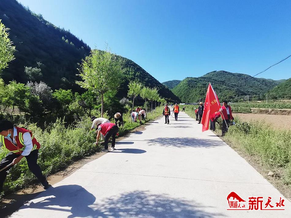 新天水讯 中伏时节、烈日炎炎,走进武山县杨河镇,各条通村道路上都有“志愿红”的身影,他们忙着打扫、割草、清运......一阵忙碌后,原本杂草丛生的乡间小道变得干净整洁。