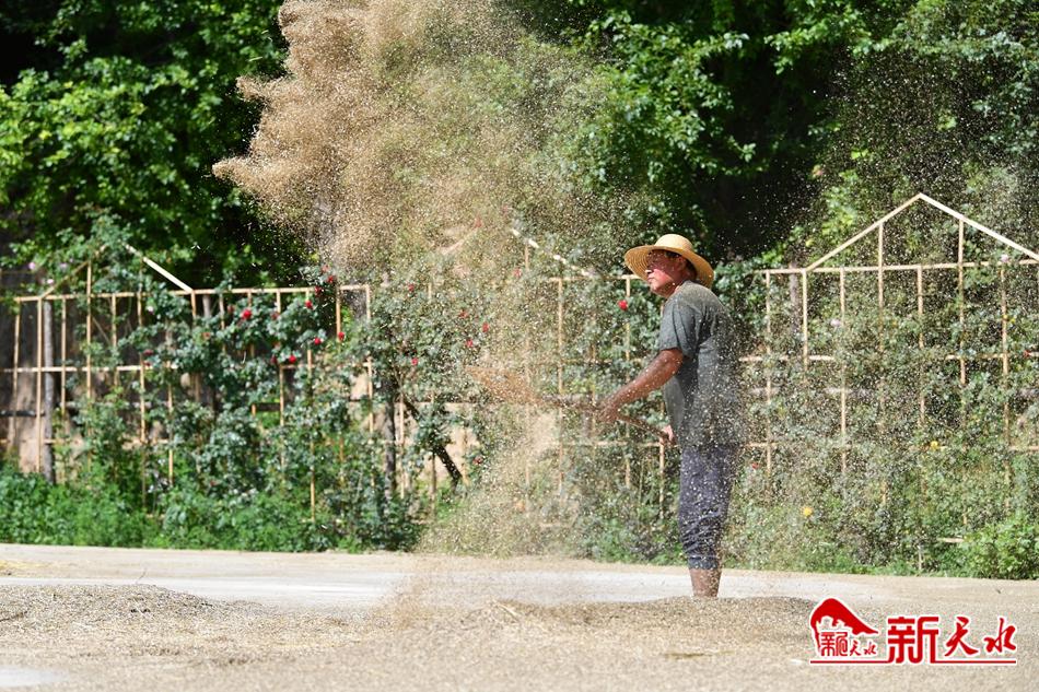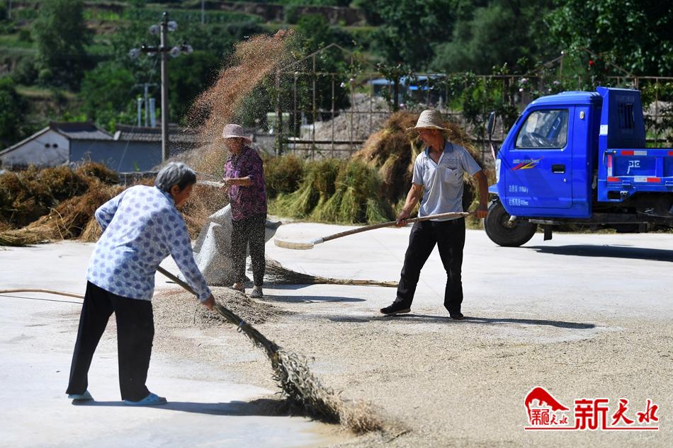 8月1日,秦安县云山镇农民正在晾晒油料作物。眼下正是农忙关键时期,连日来,天水市各乡镇到处呈现出一派夏粮抢收的繁忙景象。
