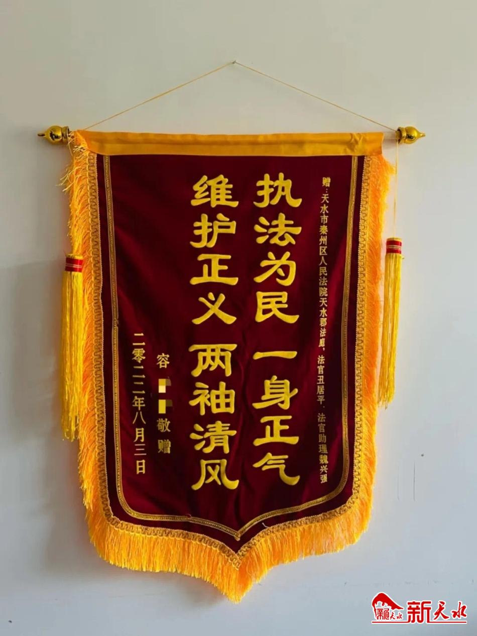 新天水讯【记者裴婷婷】8月4日上午,一位快递员为秦州区人民法院天水郡法庭的法官们送来了特殊的“七夕礼物”,看着写有“执法为民一身正气 维护正义两袖清风”的锦旗,法官们既欣喜又好奇,这是怎么回事?