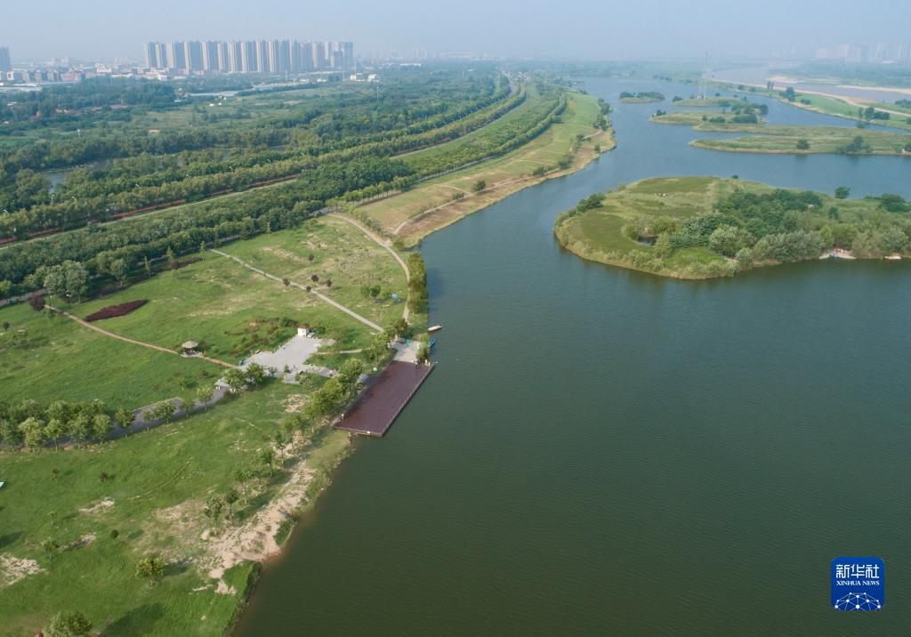 这是2022年7月31日拍摄的渭河西安段风光(无人机照片)。新华社记者 张博文 摄