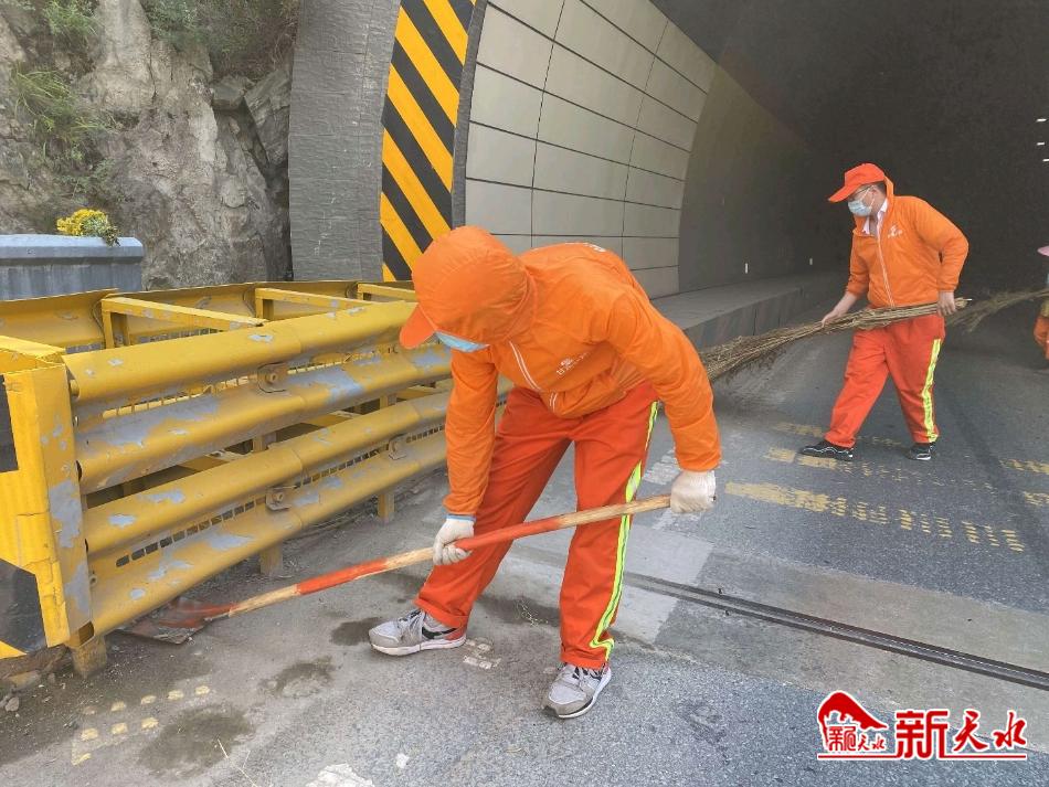 新天水讯【通讯员 张添珍 冯文茜】近期,清水县持续高温天气,清水公路段组织机关人员下沉一线清扫擦拭隧道、开展日常保洁,着力打造“畅、安、舒、美”的公路路域环境。
