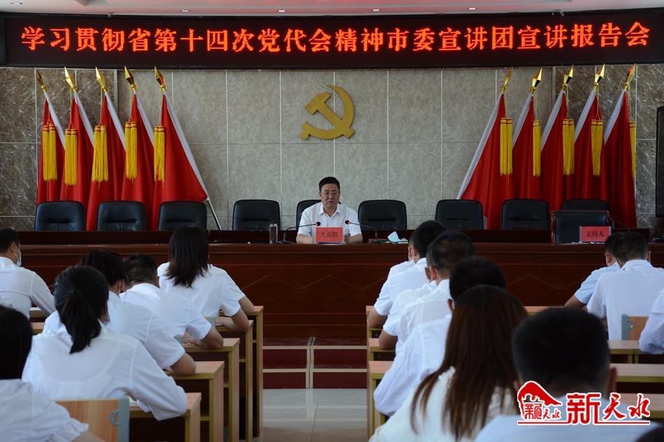 新天水讯【记者刘晓亚】省第十四次党代会精神市委宣讲团宣讲报告会日前在天水市秦州区太京镇举行,市委常委、秦州区委书记王东红作宣讲报告。