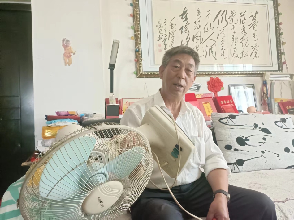 老人告诉记者,他刚才正在修理这个邻居拿来的电风扇,说着,还打开开关,电风扇转动正常,看着电风扇已经修好,老人露出了孩童般的笑容。