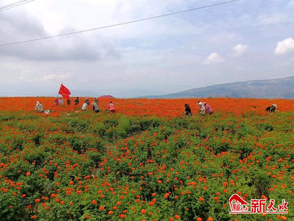 美丽经济融合发展。咀头乡以产业发展引领乡村振兴,因地制宜引进万寿菊产业。时下,正值万寿菊盛花期,咀头乡宋坡村大片金黄色的万寿菊长势正旺,万寿菊“落地生花”实现了经济效益和环境美化“双赢”,引导农民由种植经济效益低的传统农作物逐步向种植经济价值高、具有旅游观光效益的作物转变,成为农业增效、农民增收的有效途径。