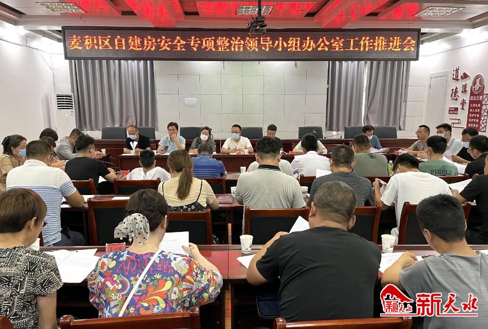 新天水讯【特约通讯员 窦耀辉】8月8日,麦积区自建房安全专项整治工作领导小组办公室组织召开全区自建房安全专项整治工作推进会,会议紧紧围绕省市区《自建房安全专项整治工作实施方案》,突出“百日行动”重点,安排部署全区自建房专项整治下一阶段重要工作。