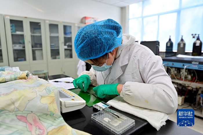 马敏敏团队成员在实验室处理骨胶原样品。受访者供图