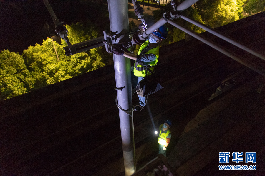 接触网作业“高压、高空、高危”。每一次检修时,测量的数据必须精确到毫米。因此,工作时,刘永春和同事们必须精力高度集中。在3米高的工作台上,他们要不停地重复仰头、半蹲、弯腰,调整悬挂、检查接触网导线、涂抹导电膏、紧固螺栓,一直到结束作业。