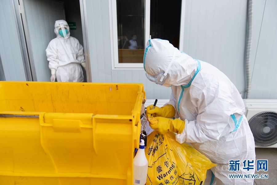 在暂存间,赵映和同事们需要再次对疫情医疗废物进行消毒。赵映说,虽然这份工作辛苦又危险,但是严格的防范措施和到位的个人消毒,还是让他对完成这份工作充满信心。能为疫情防控贡献一份自己的力量,赵映觉得,这份辛苦,值得。