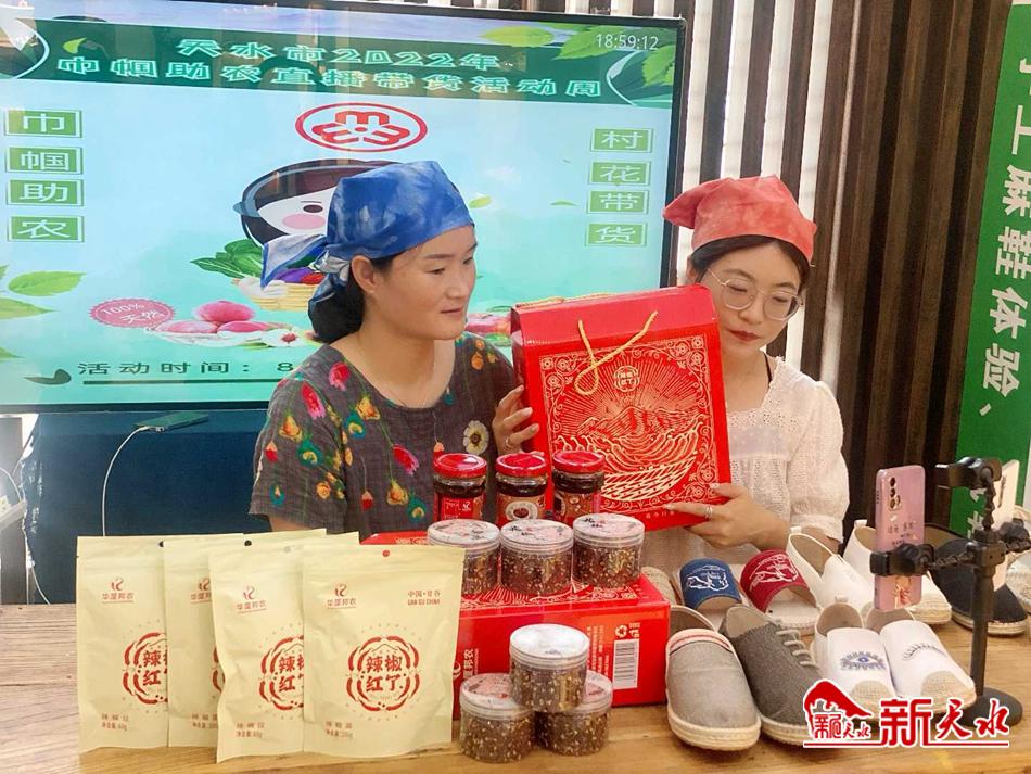 甘谷县妇联孵化的9名“村花”进行现场直播带货,甘谷县陇上椒集团、天水润谷农业直播基地、甘谷辣椒红了832消费扶贫馆、甘肃雅路人麻编工艺有限公司等6家优质企业,为消费者带来特色十足的农特产品。截至晚6时,共售出甘谷辣椒系列、花椒系列、苹果、粉条、麻鞋等农产品23单,销售额980余元,观看直播人数4000余人次, 点赞、评论7000余人次。