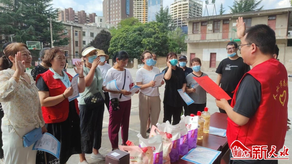 新天水讯【记者余碧波】为深入推进《民法典》学习宣传教育工作,让《民法典》走到群众身边,走进群众心里,8月12日上午,秦州区科协联合秦州区西关街道科协开展了以“美好生活•民法典相伴”为主题的科普宣传走进天缆家园小区活动。