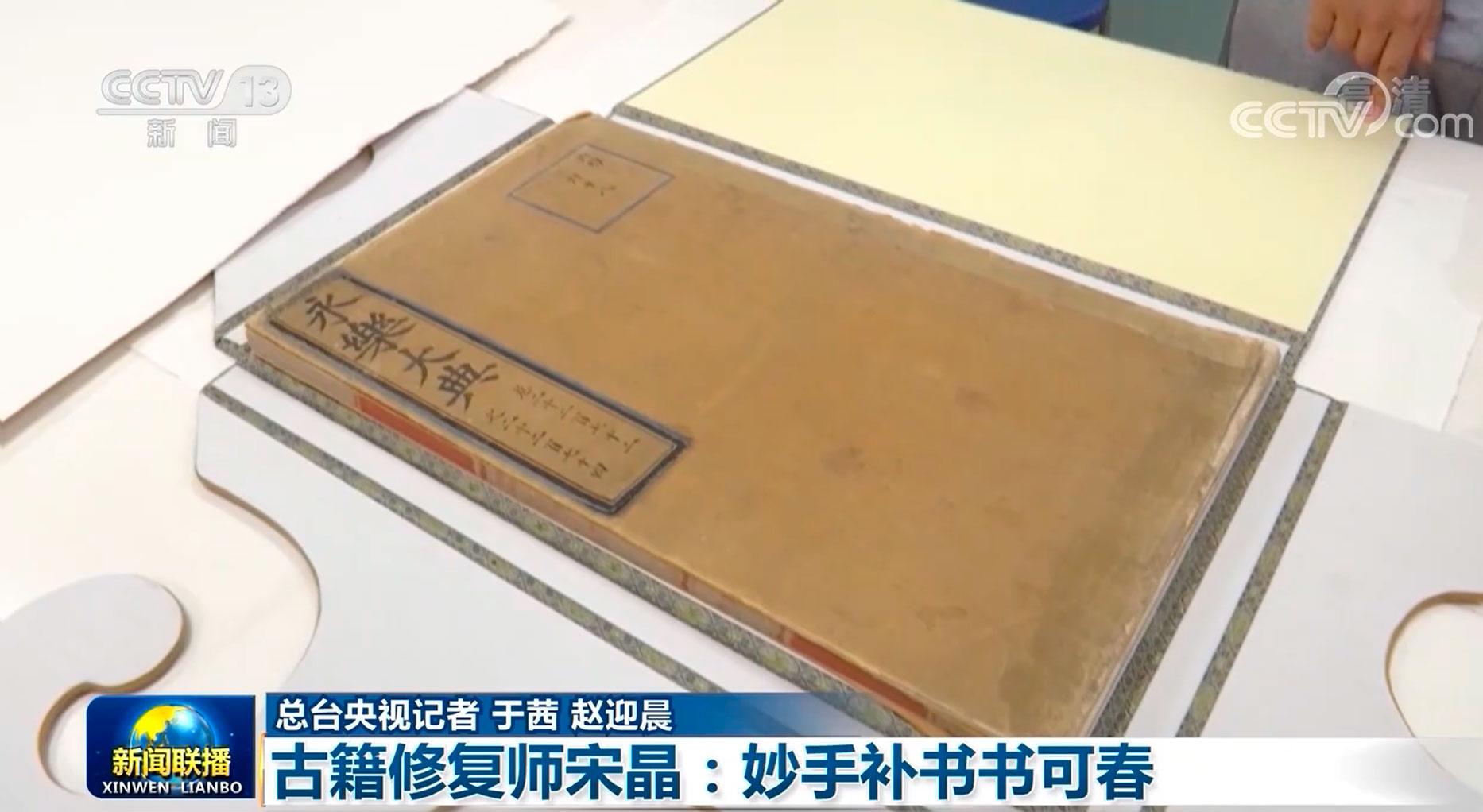 目前,宋晶所在的修复小组已经开始《永乐大典》“湖”字册的修复工作。他们亲手织绢、将生丝转为熟丝,再染色老化,还原出逼真的样书封面,完成了修复试验。