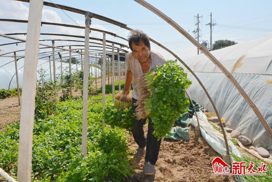 记者在宋庄村蔬菜种植基地看到,渭河川道区内设施大棚星罗棋布,一条条产业路纵横交错通向地头。一块设施基地内,露天种植的香菜鲜翠欲滴,宋庄村村民宋连德将采挖好的香菜扎成捆后,装进停在不远处的农用三轮车内。