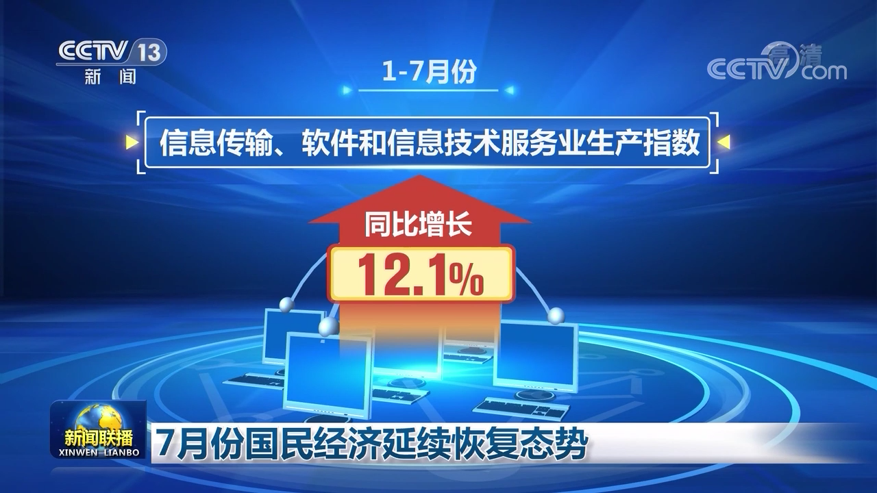 高技术产业发展较快,数字经济增势较好。1—7月份,信息传输、软件和信息技术服务业生产指数同比增长12.1%,实物商品网上零售额增长5.7%,比上月加快了0.1个百分点。