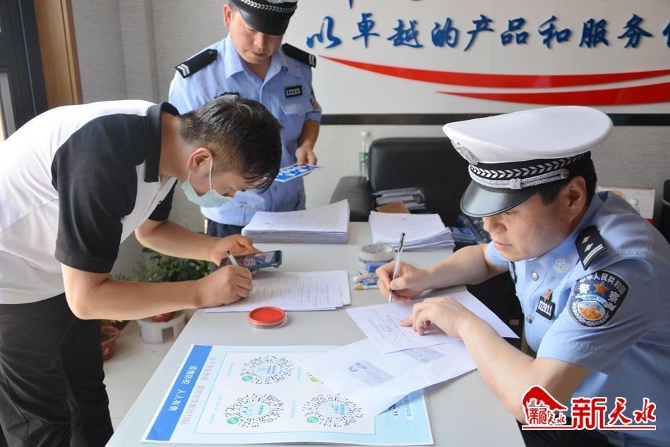 在秦州区石马坪一处交警执勤岗亭,记者看到执勤民警结合路查路检,对过往电动两轮、三轮车进行检查,对违规没有上牌的电动车现场免费登记上牌。只见民警详细登记每一辆电动车车主信息、发放并帮助安装号牌,仅几分钟就完成了一辆电动车上牌工作,整个流程顺畅有序。