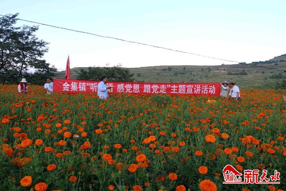 新天水讯 近日,清水县金集镇在赵寨梁万寿菊种植基地开展“听党话、感党恩、跟党走”主题宣讲活动。