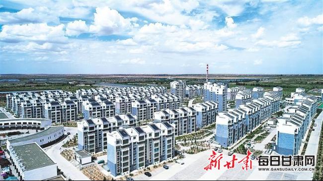 ▲黄花滩易地搬迁安置点绿洲小城镇航拍图。(省民政厅供图)