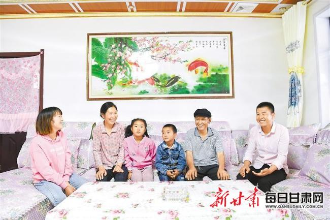 ▲黄花滩生态移民区富民新村村民李应川一家。