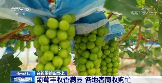 央视网消息:初秋八月,风吹稻浪、瓜果飘香,乡间田野到处都是一派丰收好景象。在河南商丘夏邑,上万亩的葡萄已经进入了成熟季。新鲜上市的葡萄不仅吸引了大量游客前来采摘,天南海北的客商更是直接跑到了地头前来采购。