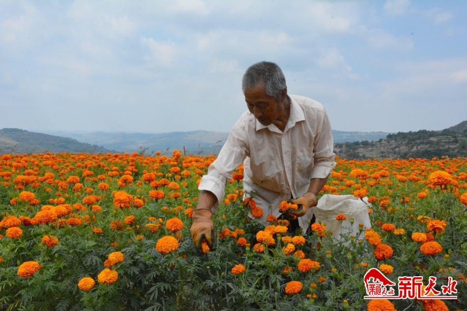 “突突突……”一阵三轮农用车的轰鸣声由远而近传来,车斗里装满了刚刚采摘的万寿菊。