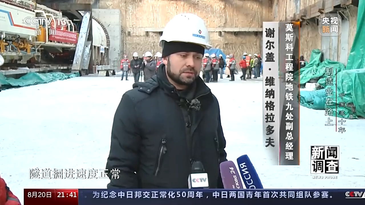 莫斯科工程院地铁九处副总经理 谢尔盖·维纳格拉多夫:中国产的隧道盾构机展现出自己的优势,隧道掘进速度正常,甚至还能超出预期。