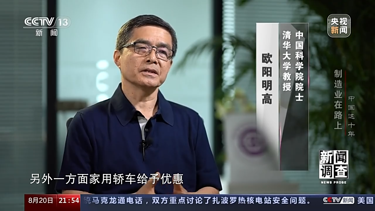 中国科学院院士 清华大学教授 欧阳明高:我们现在整个中国动力电池的产业链是全球最全的,我们中国电池的产业规模是全球最大的,我们为全球配套也是最广的,我们链条各个环节现在都走在国际前列了。