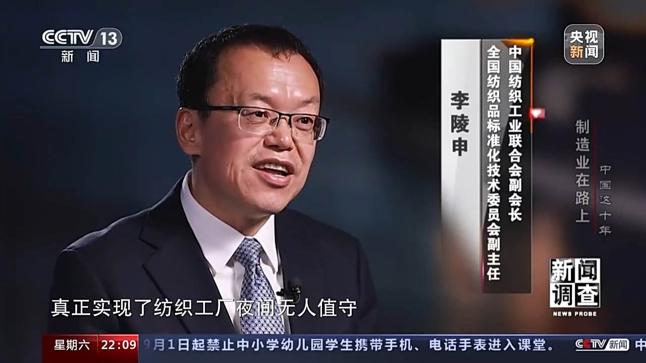 中国纺织工业联合会副会长 全国纺织品标准化技术委员会副主任 李陵申:经过这几年行业的这种数字化、网络化、智能化这种迭代升级,那么整个行业的劳动生产效率,智能制造水平和整个数字化的服务水平都得到了极大提升,劳动生产率大幅提高。