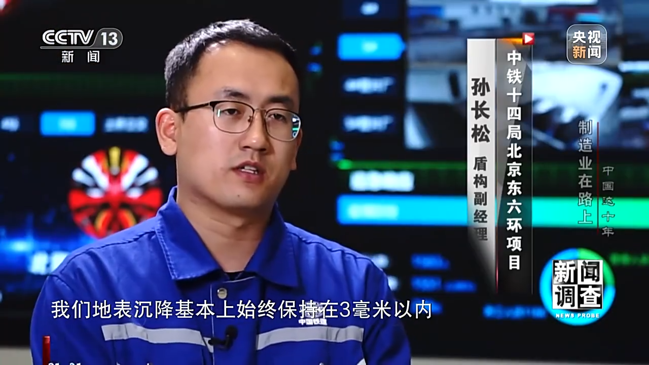 中铁十四局北京东六环项目盾构副经理 孙长松:我们盾构机开挖直径是16米07,我们地表沉降基本上始终保持在3毫米以内。