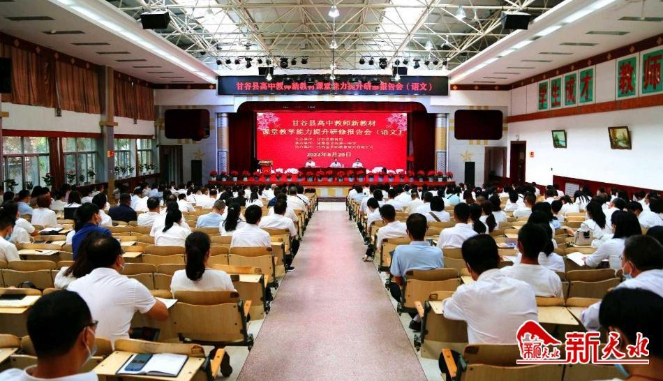 新天水讯【特约通讯员王建军 余文强】8月20日上午,甘谷县教育局组织开展高中教师新教材课堂教学能力提升研修培训,由江西金太阳教育集团名校研究院结合自身丰富的教师培训工作经验和专家资源,组织张辅良等9名全国著名专家对该县普通高中学校和初中“4+6”校九大学科1802名专任教师进行培训。