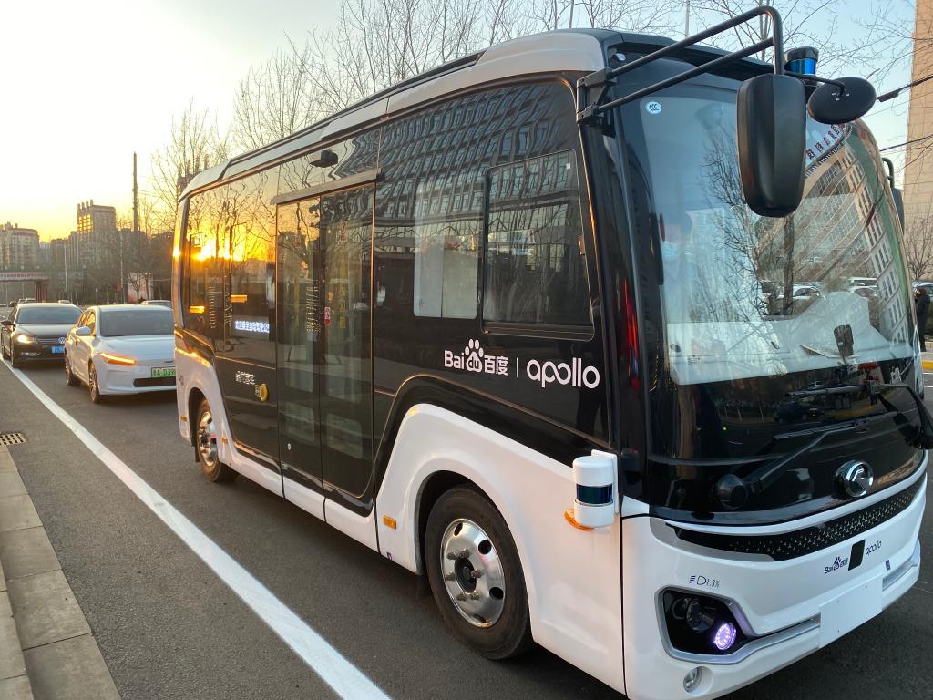 这是山西阳泉市的自动驾驶公交车(2022年2月22日摄)。新华社记者 陈志豪 摄