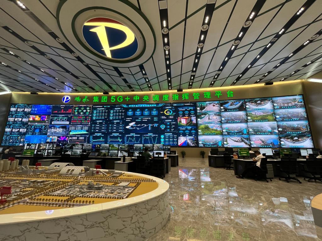 与此同时,数字赋能使山西煤炭绿色开采更加智能化。在山西鹏飞集团5G+中央调度指挥管理平台大屏幕上,正实时展示200公里外一座煤矿的生产经营情况。这样的实时画面还可以在手机App上看到。