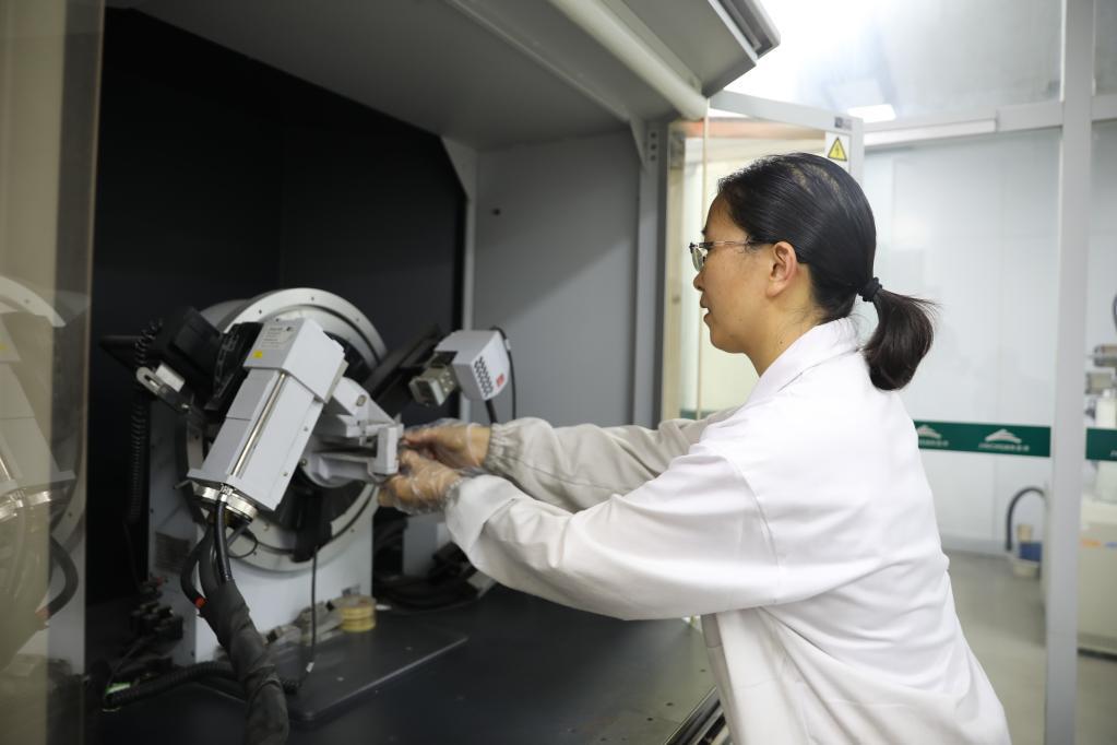 在榆中县和平镇金川科技园区,工作人员马延会在分析实验数据。新华社记者 杜哲宇 摄