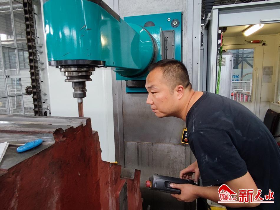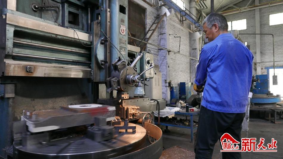 看,刨床师傅正在拉着钢丝绳,准备卸下工件;镗床师傅正在聚精会神测量孔径尺寸;车床师傅正在快速摇动手轮,仔细“对刀”;划线台上整整齐齐摆放着一排排零件,划线师傅正一件件“找正”;50多岁的任双应正全神贯注盯着眼前被车刀一圈一圈“划”过的工件……他们后背上汗水印出的“地图”,足以证明他们的辛苦。