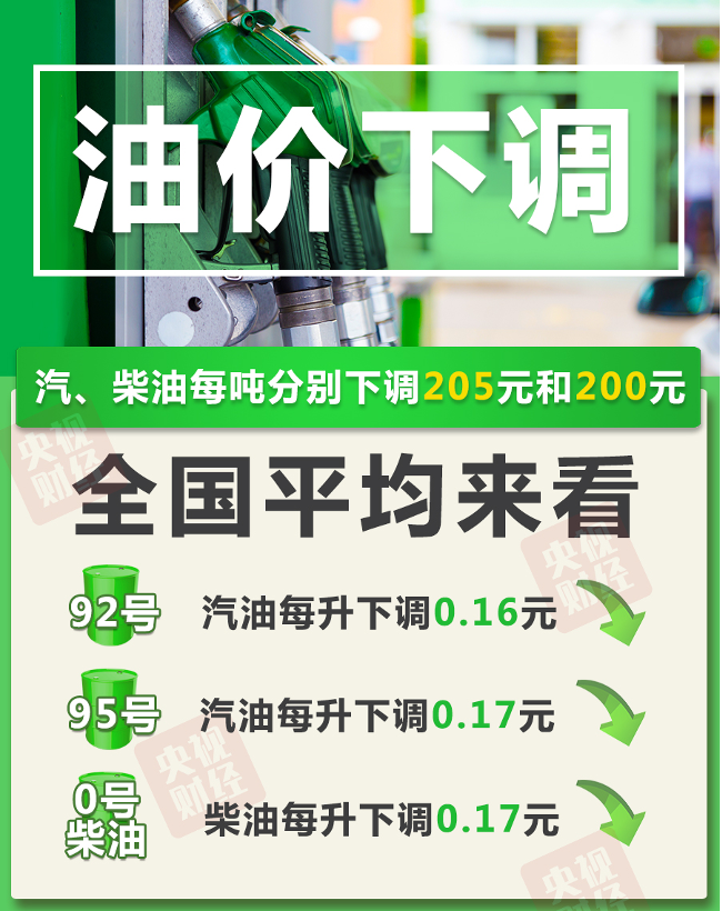 0号柴油每升下调0.17元。