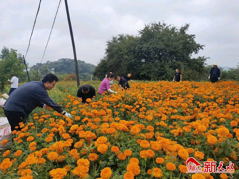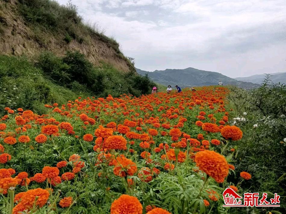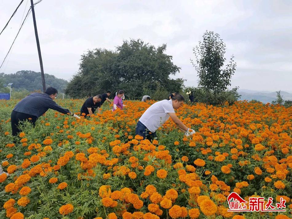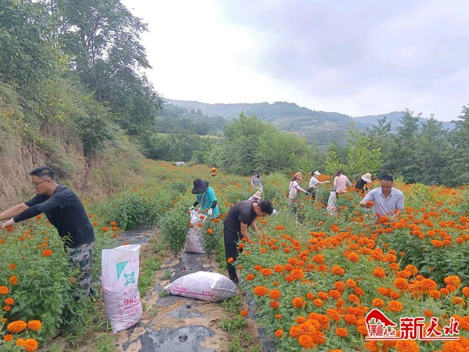 新天水讯 8月,正是丰收的季节。但未来一周的持续降雨,将给正在如火如荼进行的万寿菊采摘带来影响。为减少万寿菊损失,解决劳动力短缺问题,清水县黄门镇党委、政府在统筹万寿菊种植湾场和各村现有劳力搭配的基础上,6个帮扶单位鼎力支持,60余名帮扶单位干部职工和91名镇村干部、300多名群众齐力攻坚,抢收成熟的万寿菊,做到应摘尽摘、颗粒归仓、朵朵变现。