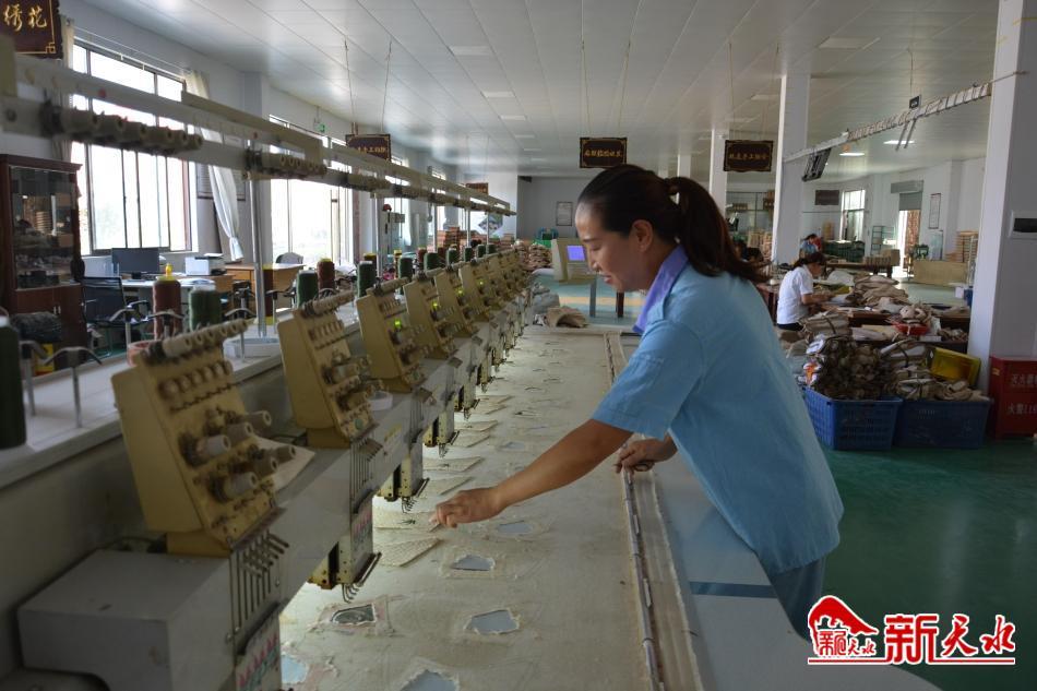 打样、手工绣花、缝边、固定鞋底……8月16日,记者在甘谷县六峰镇工业园区甘肃大漠行文化产业发展有限公司看到,生产车间里一派繁忙景象。