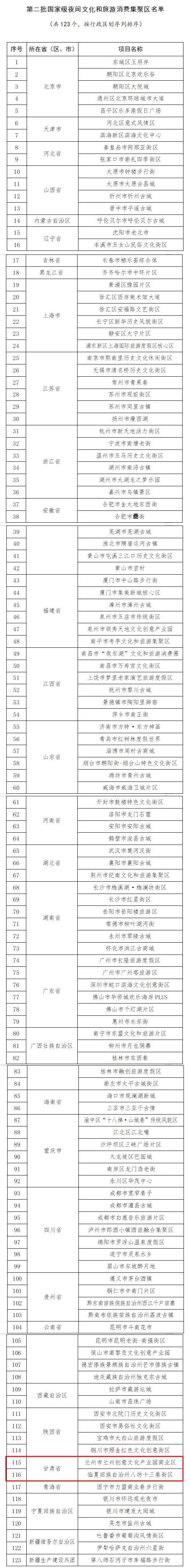 文化和旅游部8月25日公布第二批国家级夜间文化和旅游消费集聚区名单,北京市王府井、欢乐谷等123个集聚区入选,至此全国夜间文化和旅游消费集聚区已达243个。第一批名单中,甘肃省兰州市兰州老街、嘉峪关市嘉峪关·关城里景区、酒泉市敦煌夜市特色商业街三地入选,此次兰州市兰州创意文化产业园商业区、临夏回族自治州八坊十三巷街区两地上榜。