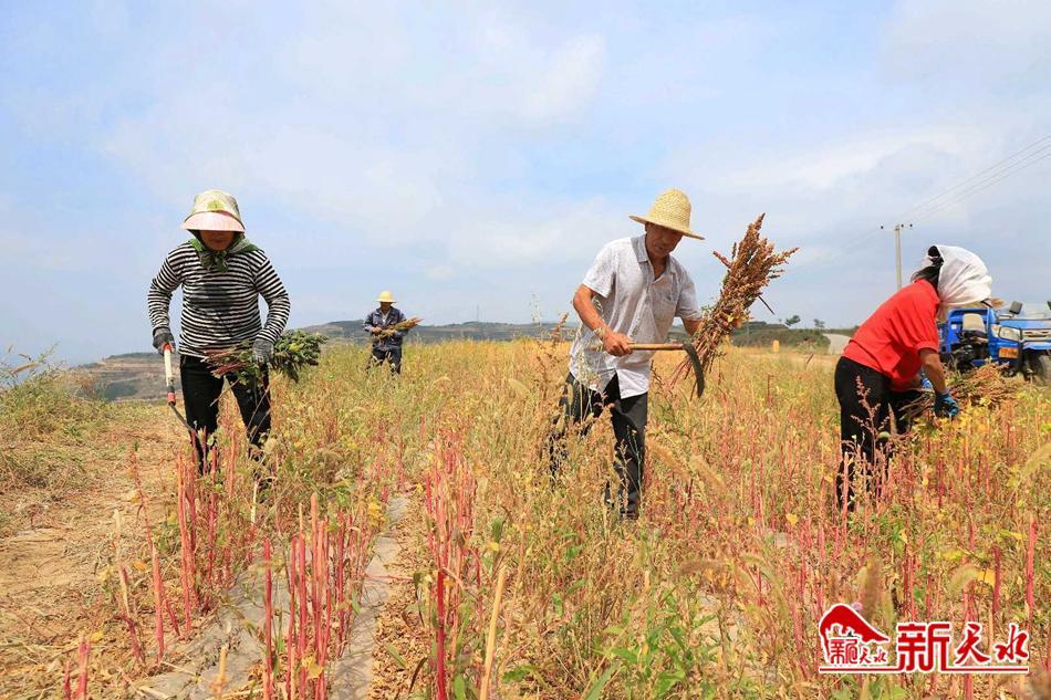 新天水讯【特约通讯员 郭永强 张燕燕 包玉霞 邓亦航 】近日,在海拔2000多米的武山县榆盘镇四湾村,一片片色彩斑斓的藜麦随风飘香,沉甸甸的藜麦穗饱满丰硕,村民们带着丰收的喜悦穿梭田间,开镰收割。