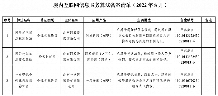 国家网信办发布境内互联网信息服务算法备案清单,涉这些应用产品