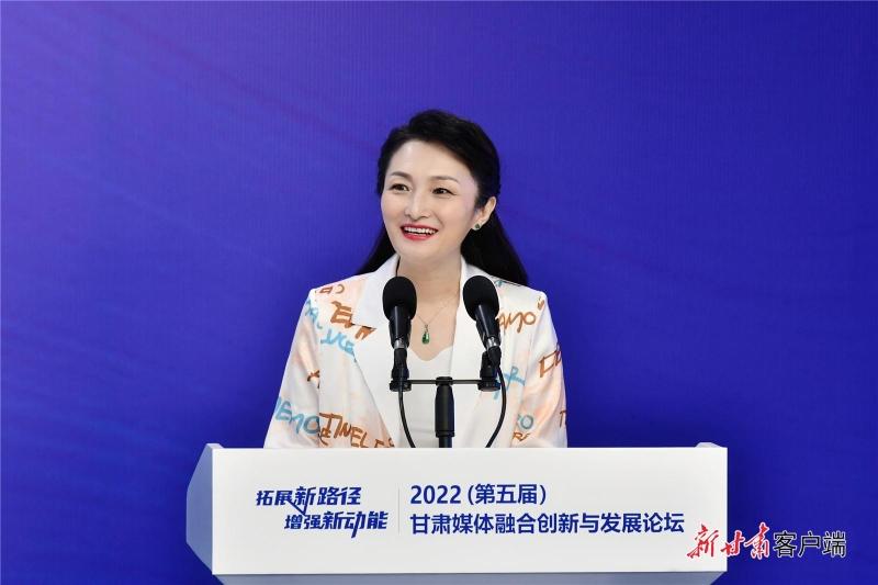 ▲甘肃新媒体集团总经理、总编辑李晓君推介国际传播中心。