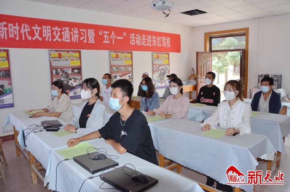 新天水讯【记者余碧波】为深入开展夏季交通安全整治“百日行动”,扎实推进交通事故预防工作,确保广大教练、学员文明学车、安全练车,提升驾校交通安全法律法规知识的普及,近日,张家川县公安局交警大队深入辖区东红驾校开展文明交通进驾校“五个一”宣传教育活动。