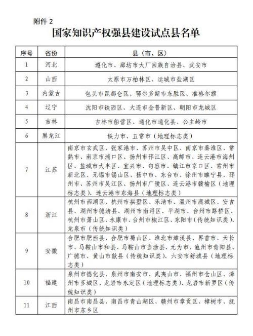 国家知识产权局关于确定国家知识产权强县建设试点示范县和国家级知识产权强国建设试点示范园区的通知