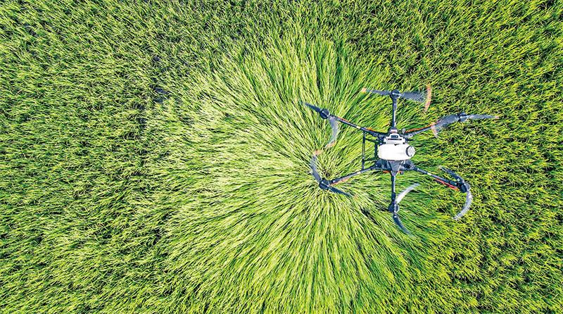 近年来,以植保无人机为代表的智能化机械在农业生产中大显身手,推动农业生产更加高效安全。图为2022年8月1日,中国制造的大疆农业植保无人机在泰国黎逸府喷洒农药(无人机拍摄)。 新华社记者 王腾/摄