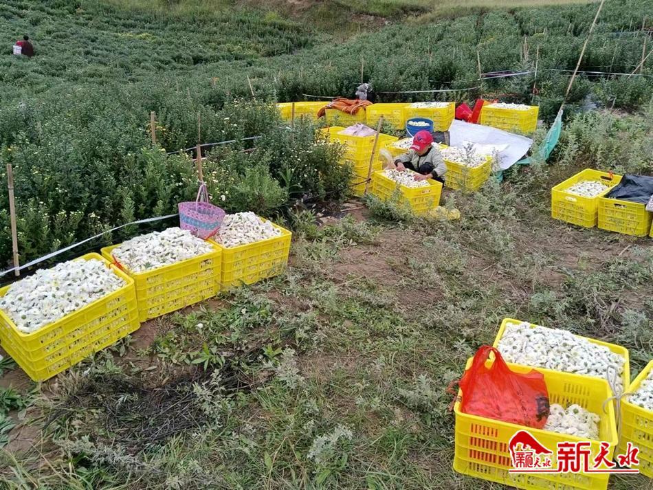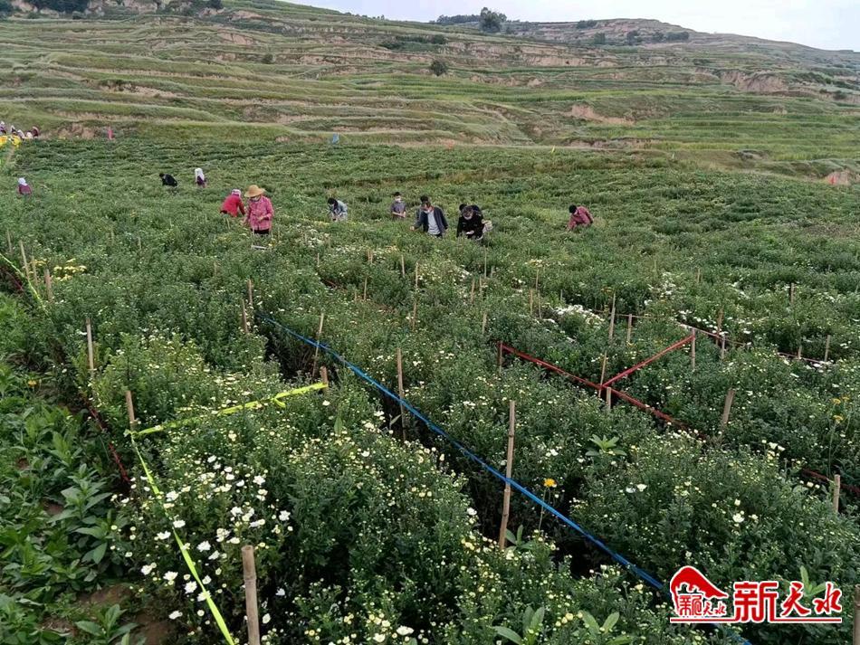 新天水讯 近日,秦安县陇城镇的田间地头,一株株七月菊长势喜人,缕缕药香味扑面而来。七月菊已进入最佳采摘期,村民们正穿梭其中,采摘、整理、晾晒,现场一派繁忙的丰收景象。