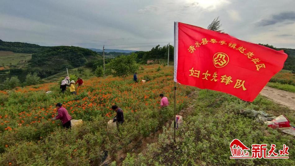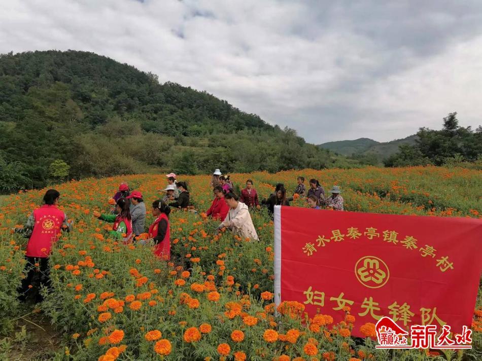 清水县秦亭镇妇联组织在万寿菊采摘中贡献巾帼力量